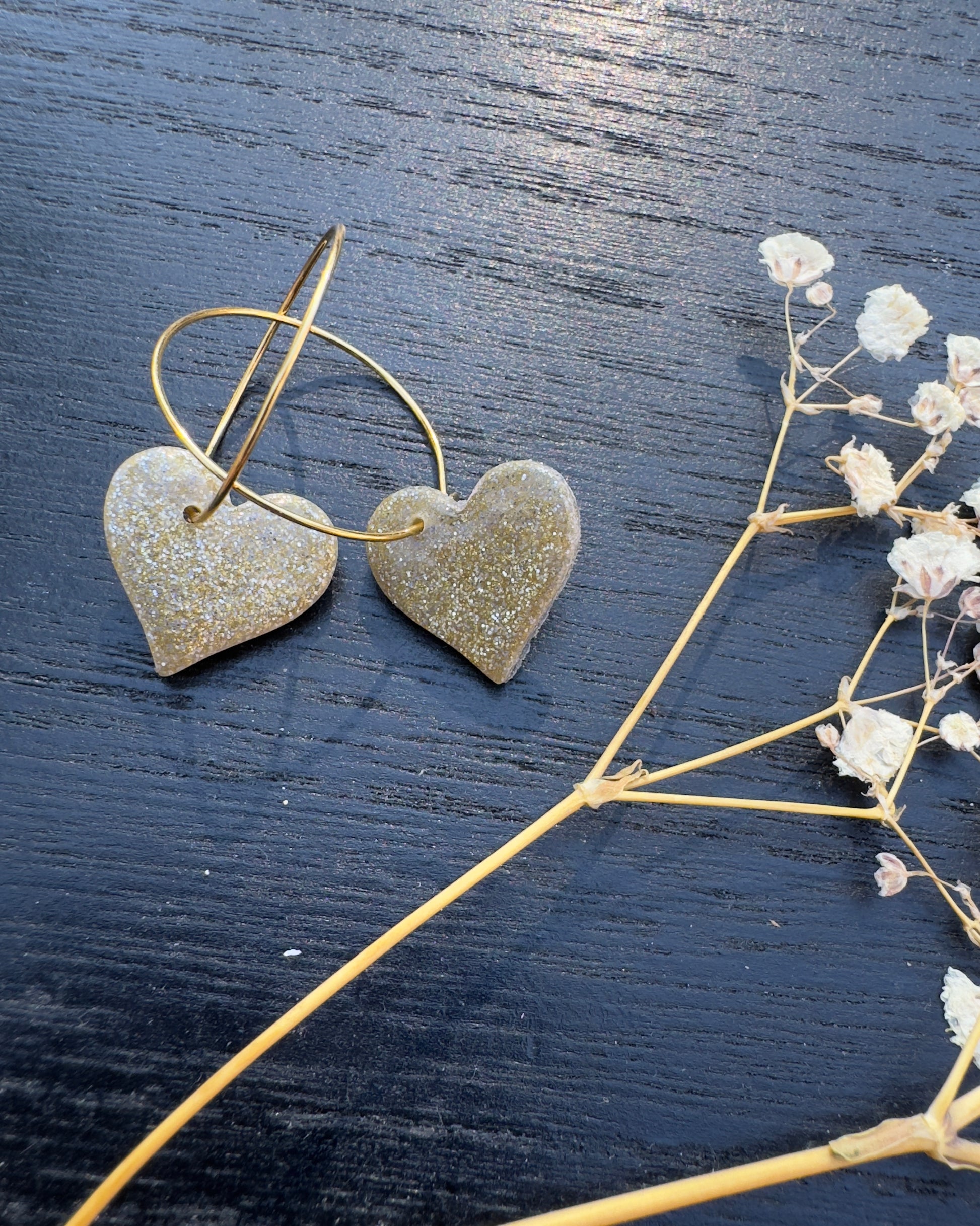 Glitter heart earring with gold hoop